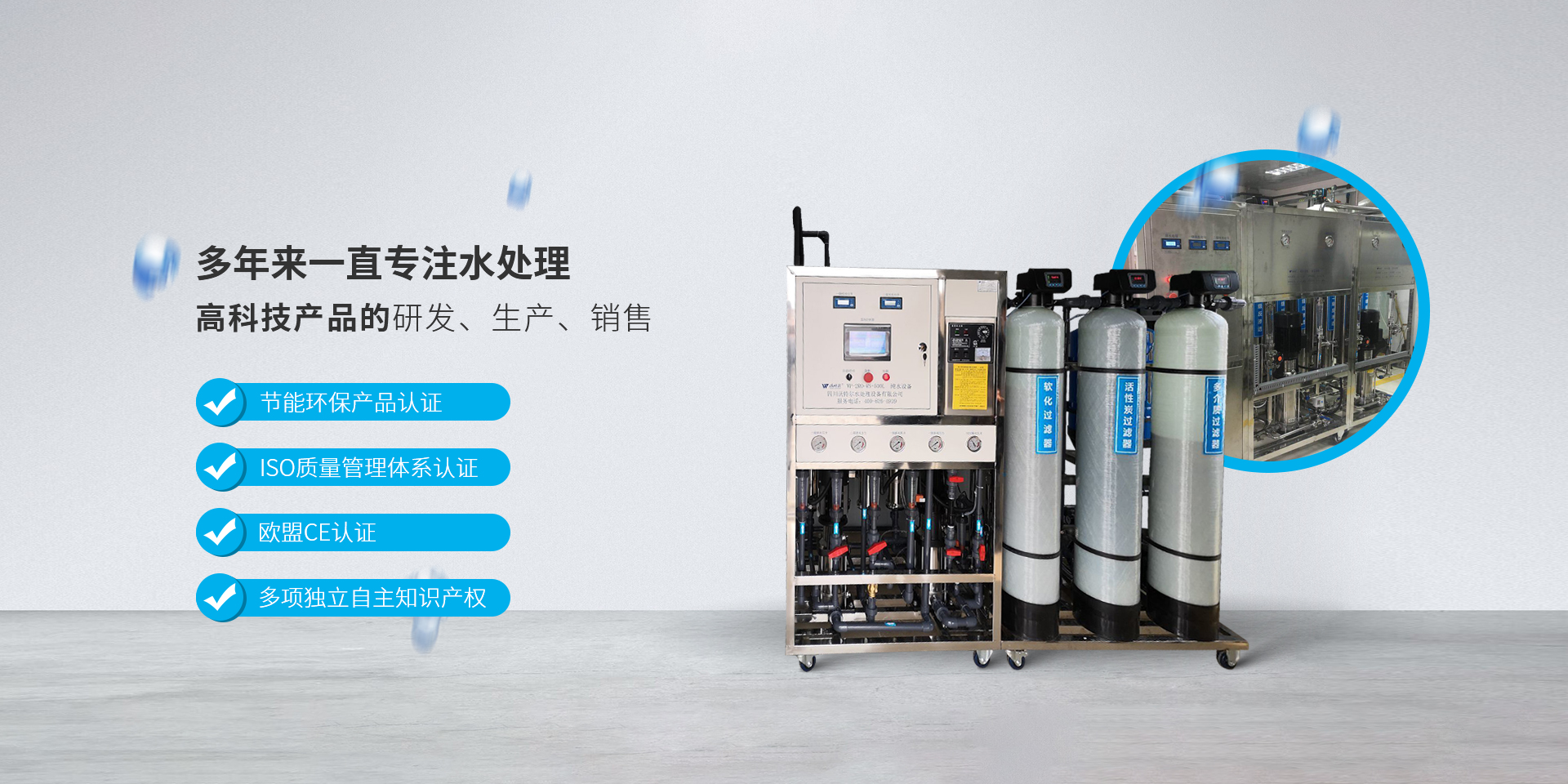 四川沃特爾水處理設備有限公司位于成都市溫江區成都海峽兩岸科技產業開發園雙堰路1919號20號樓,公司成立于2005年6月16日,擁有3000多平米的現代化廠房,是一家集純水和超純水設備的研發設計、生產銷售、安裝服務、技術咨詢為一體的綜合型企業。 公司主要生產和經營實驗室超純水機系列、工業水處理設備等。