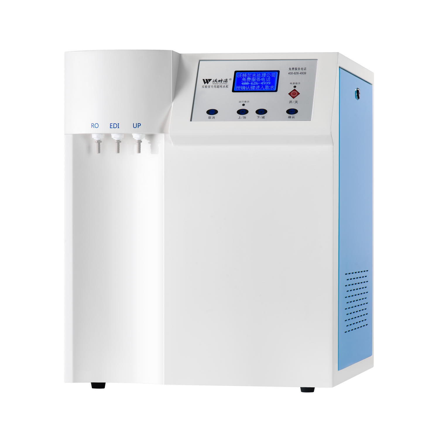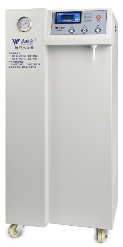 采用雙波長紫外消解系統,除熱源超濾膜組件,采用進口離子交換樹脂過濾,使超純水能滿足各種實驗要求。